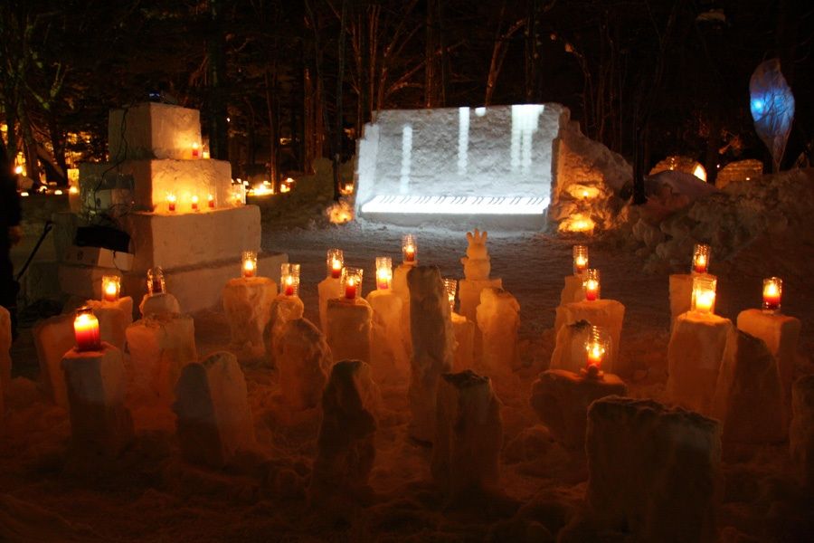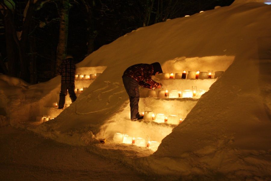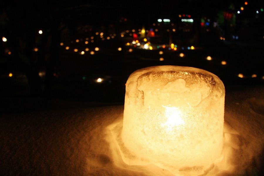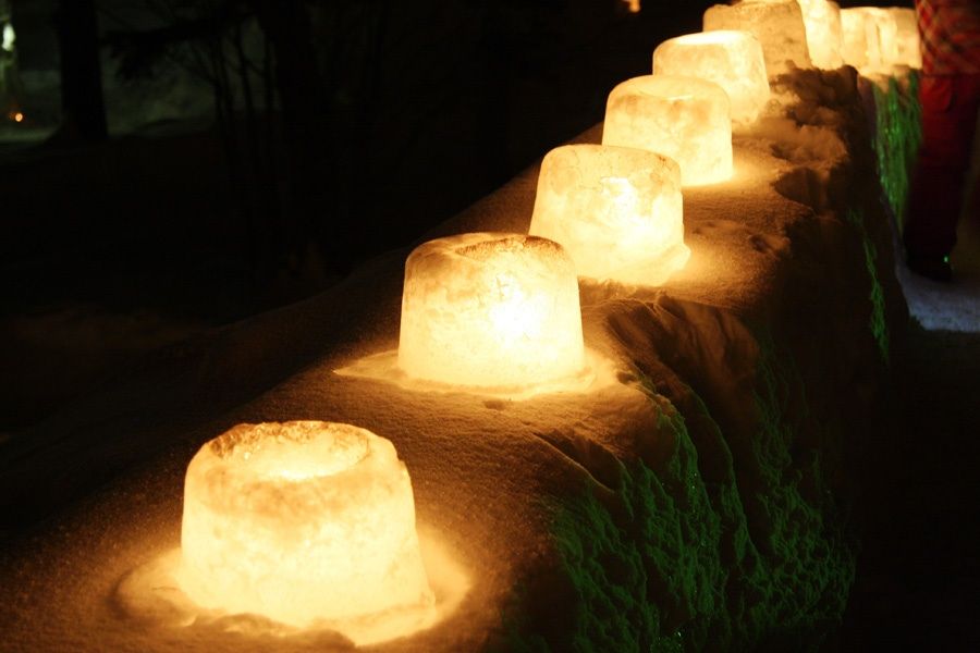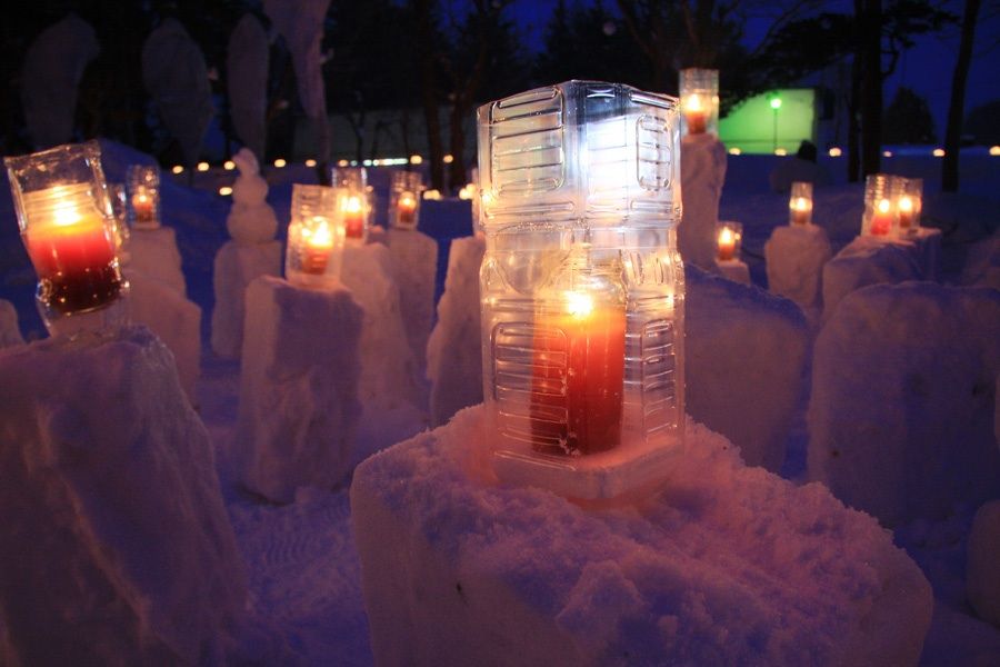 ひな壇に飾られたスノーキャンドル。